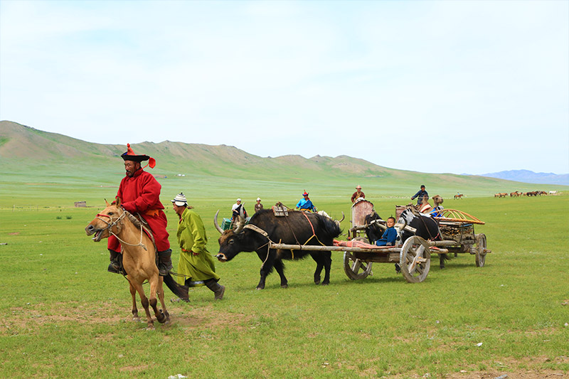 Depart Ulaanbaatar in the morning to visit the Mongol Nomadic Show, a re-enactment of late 19th-century nomadic life. Take part in a seasonal migration on yak carts, dress in traditional clothing, and learn about nomadic crafts such as felt-making, milk vodka distillation, leatherwork, and other daily activities.