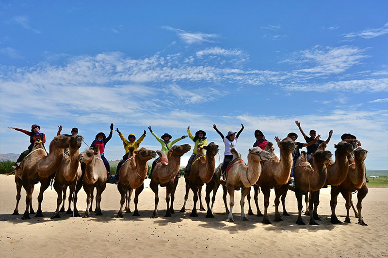 - Ride a two-humped Bactrian camel through golden sand dunes